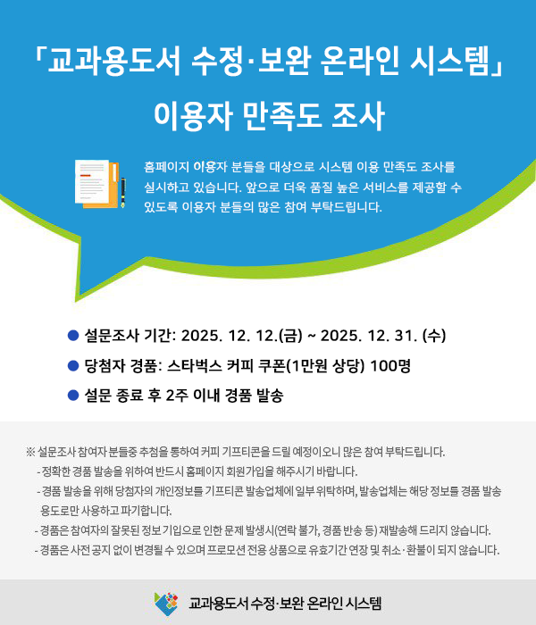 교과용도서 수정·보완대조표 2025년 12월분이 게재되었습니다.